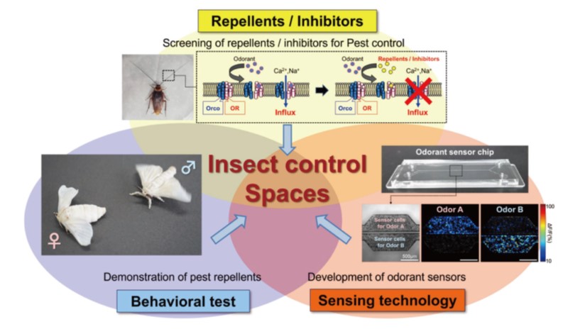 五感のセンサーのなかでは匂いセンサーは未だに適切な感度や選択性を持ったセンサはない。昆虫はきわめて高感度で選択性の高い優れた鼻をもつ。その実体は、触角の嗅覚受容細胞がもつタンパク質(嗅覚受容体)である。この嗅覚受容あ地を活用することで高感度・高選択・リアルタム性をもつ匂いセンサを開発する。