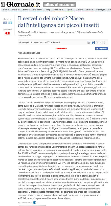 - リクナビNEXT Tech総研 (7月9日付) 「自然を模倣し学ぶエンジニアリング 「昆虫」で,研究が紹介