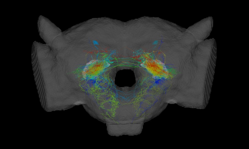 カイコガの脳を構成するニューロンの世界最大級のデータベース。このデータを使って、リアリスティックな昆虫脳の再構築をおこなう。 |