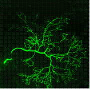 昆虫脳の単一ニューロンの構造。非常に複雑な形態であり、その形も重要な意味をもつ。 |