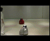 カイコガが歩行することで回転するボールの動きを検出し、カイコガと同じように動くようにロボットを操作した。日本科学未来館で常設展示。