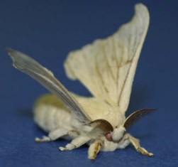 カイコガの触角にあるフェロモン受容細胞に特定の匂いに応答する嗅覚受容体を発現させた「センサ昆虫」。カイコガは特定の匂いをフェロモンと感じて、その匂いを探索する。